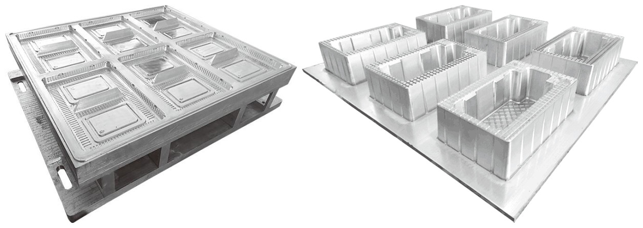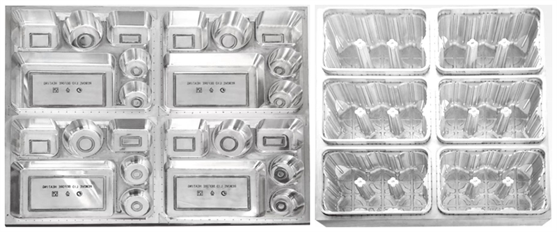 配套各類PP、PET、PE、HIPS、EPS、PVC、PLA、BOPS降解材料的正壓熱成型模具以及三工位模具。(部分模具展示)